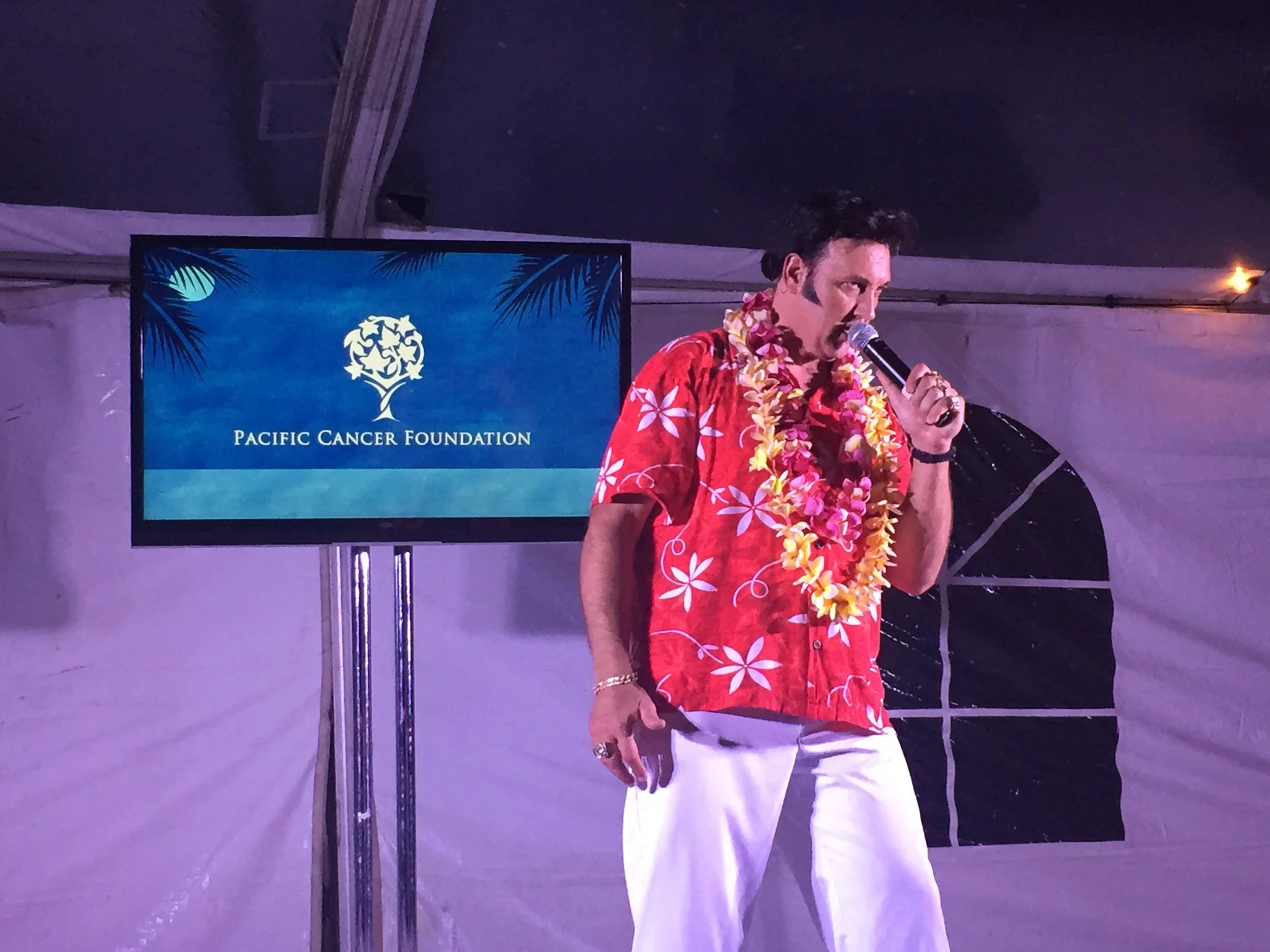 The highlight of the evening was the Elvis impersonator, a retired award-winning performer from Vegas with a show currently in Maui. Typically, he dedicates a song to a woman in the audience but this year, he spoke about his own tie to cancer. His family’s nanny had recently passed away from cancer at a young age, and the song was dedicated to her. This was a touching story and was one of many personal stories people shared. A PCF patient from every program stood up and talked about their own cancer journey, how PCF had helped them, and the importance of supporting the organization. Then, to everyone’s surprise, a representative from PAU Maui Vodka got on stage and announced a generous donation and a percentage of sales indefinitely would go back to PCF. To say the audience went crazy is an understatement! I know the next time I ordered a vodka drink, I requested PAU.